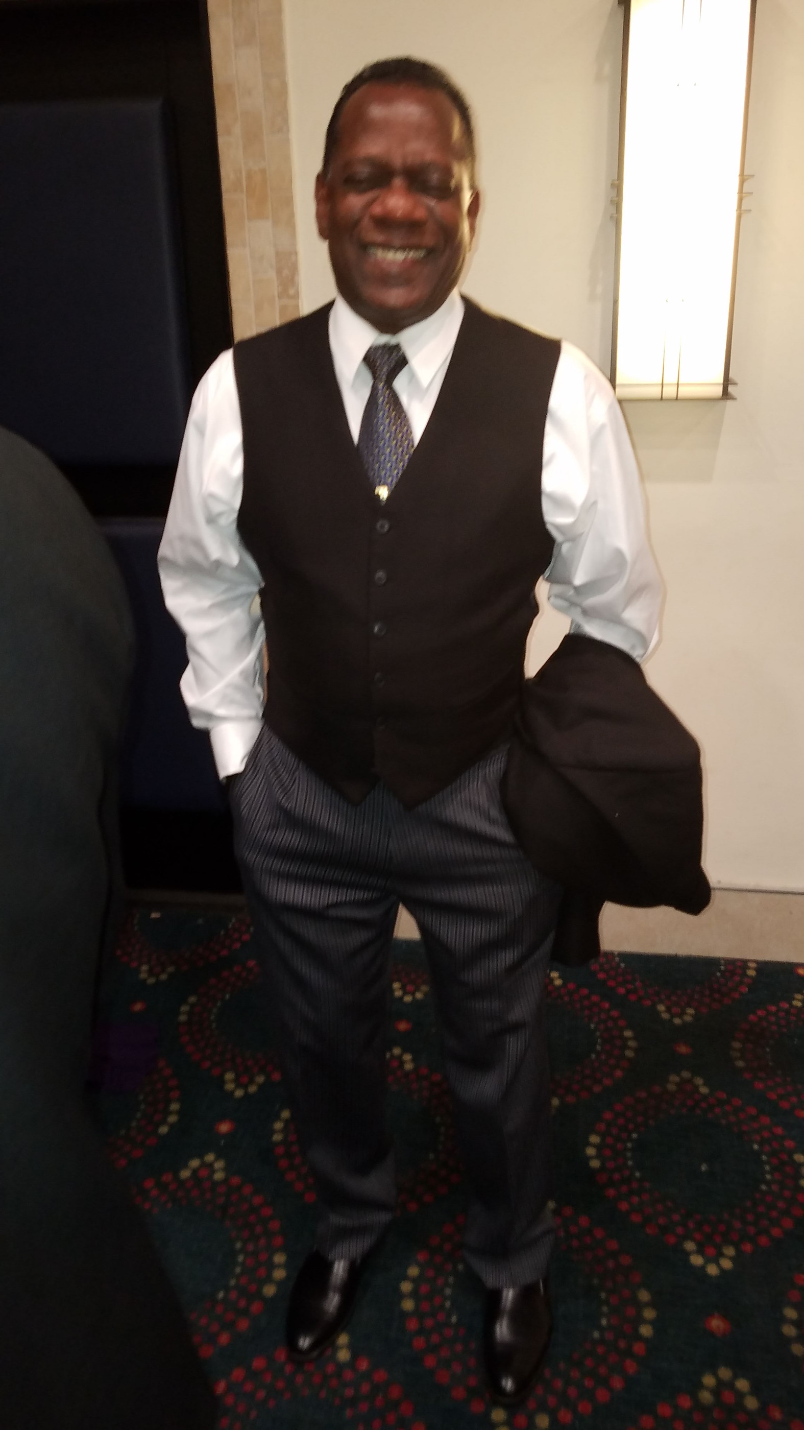 VW Bro Dwight Reece greeting W Bro Maurice Gaskin outside of the registration office